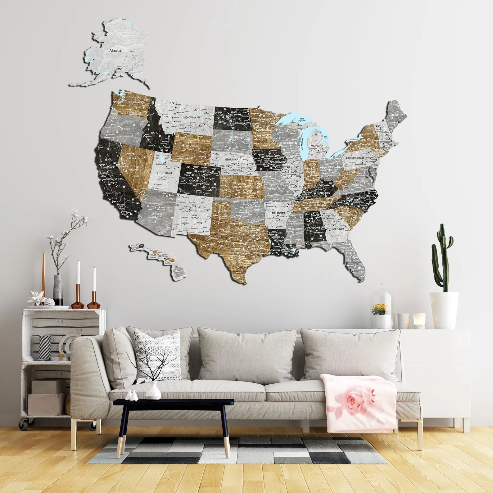You can use standard push pins to mark national parks, scenic drives or hiking regions across the states. The wooden surface supports repeated placement of pins while maintaining an organized appearance. Because the design is neutral, you can combine it with framed photos, postcards or small souvenirs to create a complete travel wall.